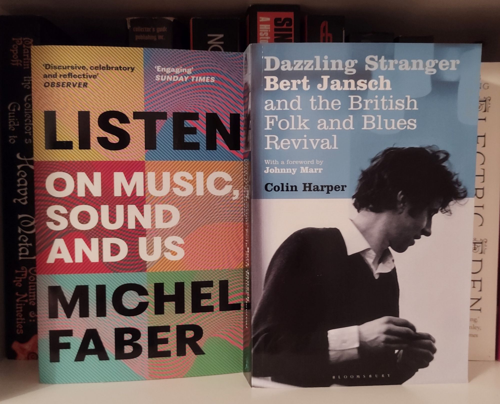 First up, a book I had been eyeing up for a while and received as a Christmas gift, Michel Faber’s Listen: On Music, Sound And Us. I saw it in a branch of Waterstones and liked the “how and why we listen to music” premise and the discursive, conversational approach Faber seemed to be taking. I thought I would find it quite inspiring for my own writing efforts. And, even if I’m not always on board with some of the arguments and sentiments in it, Faber has gotten my year of reading off to an engaging and though-provoking start. And disagreeing is part of the fun when talking about music, right?